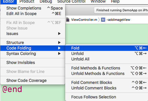 先定位到某一方法体中,打开 Edit 菜单,选择 Code Folding 子菜单: