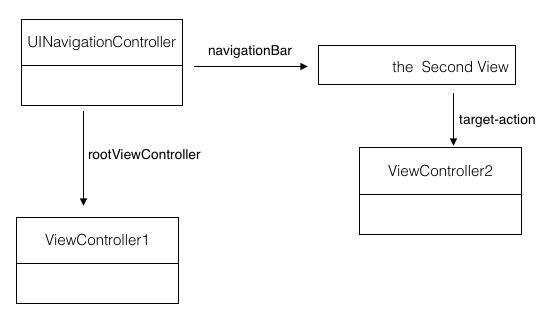 if (self) {// 设置当前视图的标题 self.title = @"the first View"; // 设置当前视图右上角的导航按钮标题,以及点击事件 self.navigationItem.rightBarButtonItem = [[UIBarButtonItem alloc] initWithTitle:@"SecondView" style:UIBarButtonItemStylePlain target:self action:@selector(gotoSecondView)];}