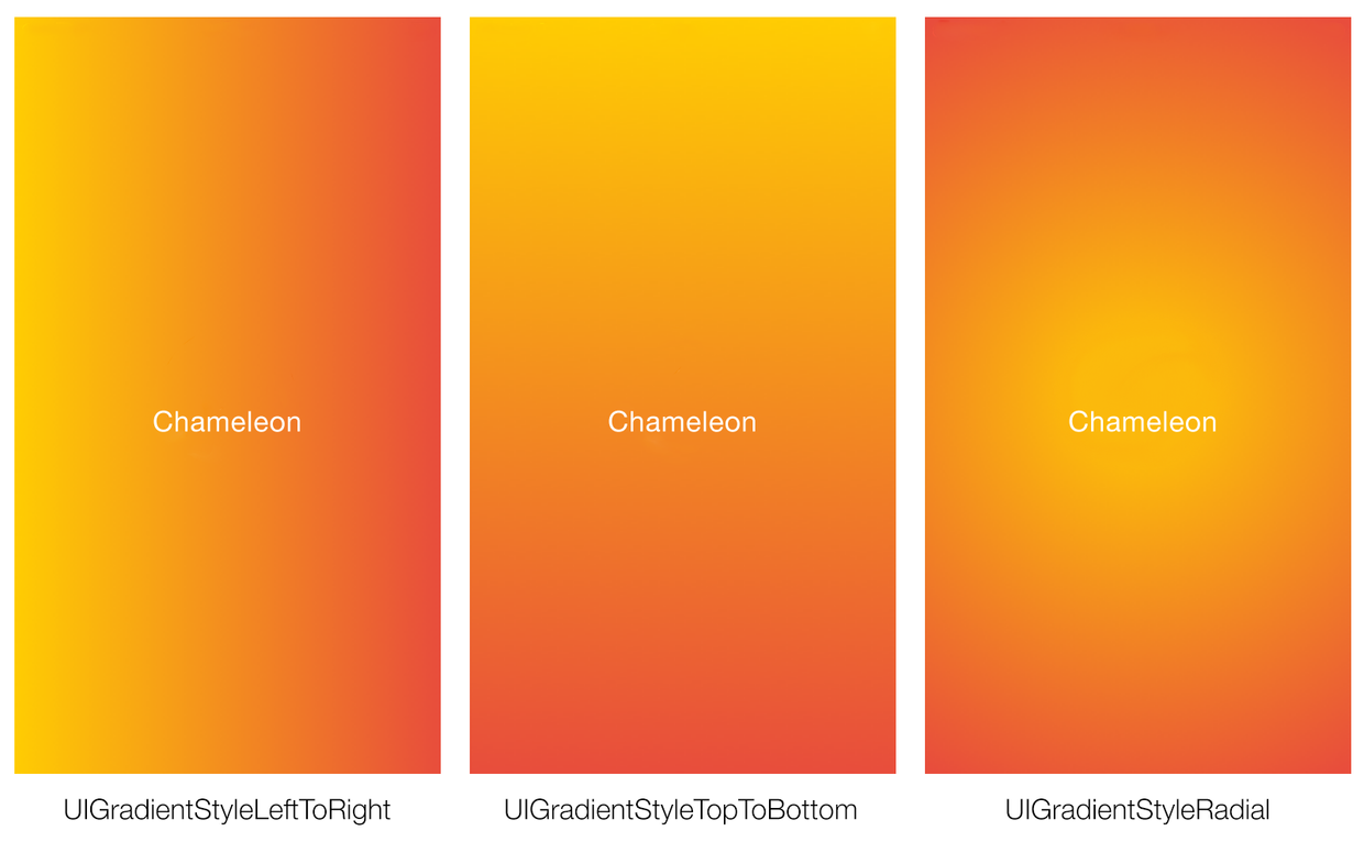 With iOS 7 & 8, Apple mainstreamed flat colors. Now, with the release of iOS 9, Chameleon strives to elevate the game once more. Say hello to gradient colors. Using one line of code, you can easily set any object’s color properties to a gradient (background colors, text colors, tint colors, etc). Other features, like Chameleon’s contrasting feature, can also be applied to create a seamless product. Experimentation is encouraged, and gutsiness is applauded!