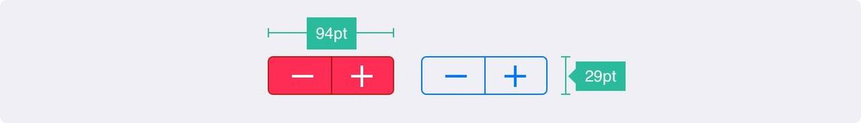 步进器是一个用于增加或减少数值的两段控件。默认状态下,步进器的一个分段显示一个加号(+)而另外一个显示减号(-)。如果有需要,这些符号也可以替换成自定义图片。