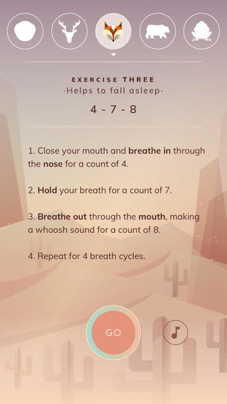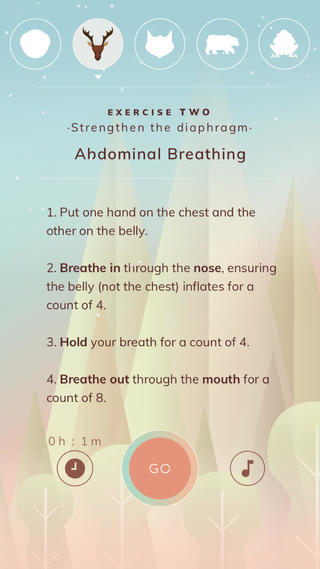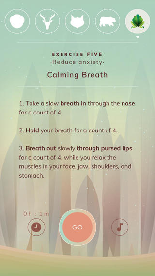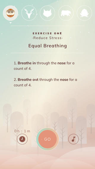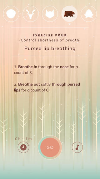 Breathe in 是一个呼吸训练应用,设定好定时器后,通过深呼吸和憋气帮你进行有规律的呼吸训练,找回平静自我,放慢生活步调和调节紧张与压力。有 5 种主题画面和优美音乐,在训练过程画面图案还有动效,非常精美治愈。