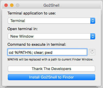 点击安装 Go2Shell 到 Finder,你会发现图标和旧版本不一样,这个是白色的。