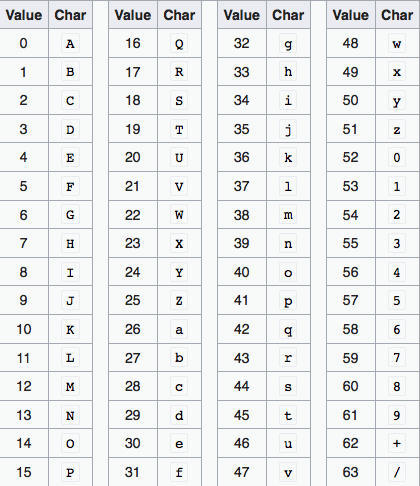 base64 编码表: