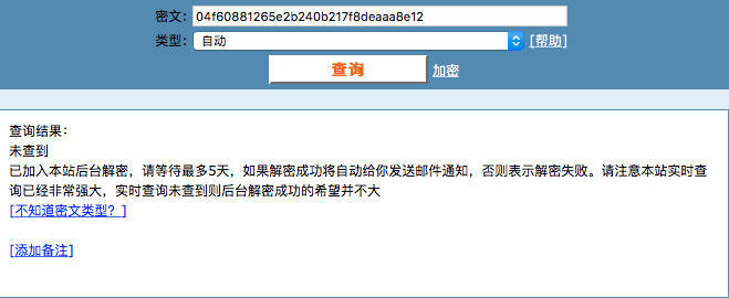再将此 MD5 密码放到该网站上进行查询: