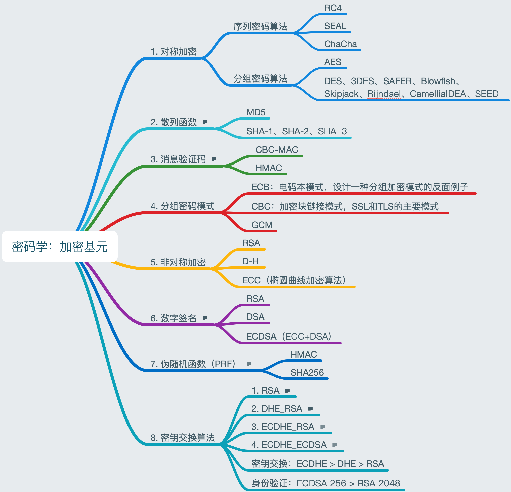 加密基元就是一些基础的密码学算法,通过它们才能够构建更多的密码学算法、协议、应用程序。