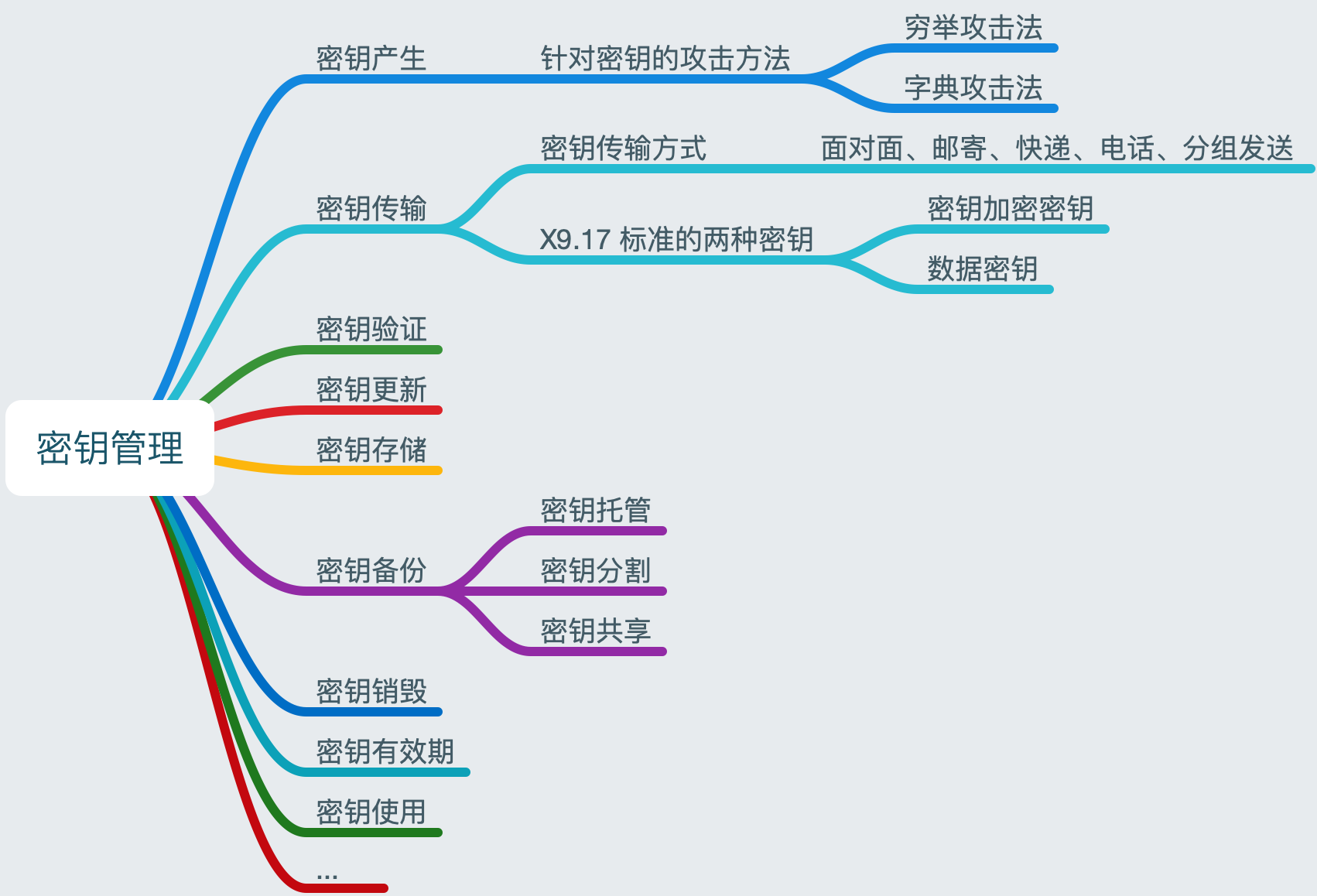 | 密钥备份及恢复 | 为避免因用户丢失解密密钥而无法解密合法数据的情况,PKI 提供备份与恢复密钥的机制。必须由可信的机构来完成。并且,密钥备份与恢复只能针对解密密钥,签名私钥不能够作备份 |